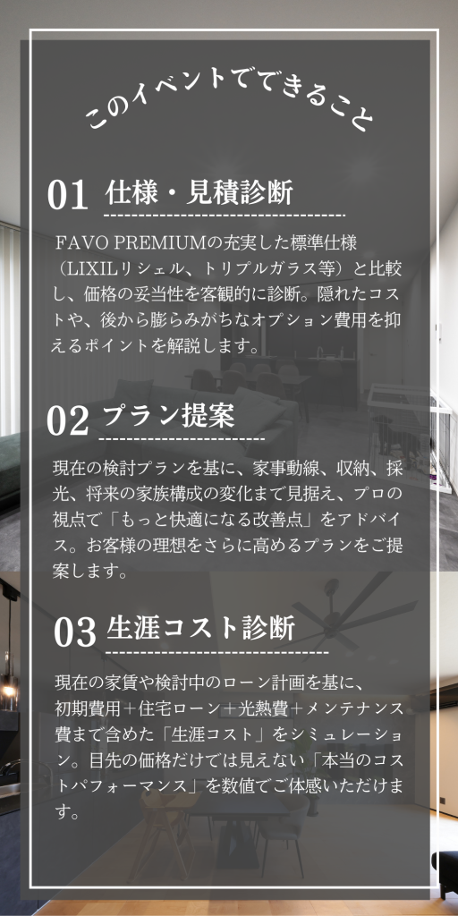 ご予約時にご見学希望のモデルハウスとご来場人数(お子様の人数も含め)を教えていただけますと幸いです。