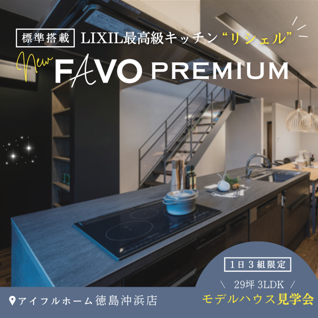 マイホームを検討していく中で、こんな家がいいな…と理想が膨らんでいく家づくり。 特に、全国で、そしてこの徳島県の奥様で、「マイホームに取り入れたい!」と大人気なのが LIXILの最高級グレードキッチン「リシェル」です。 ただ最高級だけあって、金額も高めで諦める方がいるのも事実・・・。 アイフルホームの新商品「FAVO PREMIUM」は、 この最高級グレードキッチン「リシェル」が 標準搭載 です! アイフルホーム徳島沖浜店のモデルハウスでは、 このリシェルキッチンの魅力、使い勝手、奥様に人気な理由が、等身大サイズのモデルハウスで体感いただくことができるので、リアルにイメージをつけることができます! 他にもデザイン性、機能性、コスパに優れた厳選された各種設備が標準搭載されていますので、ぜひ、お気軽にご見学ください。