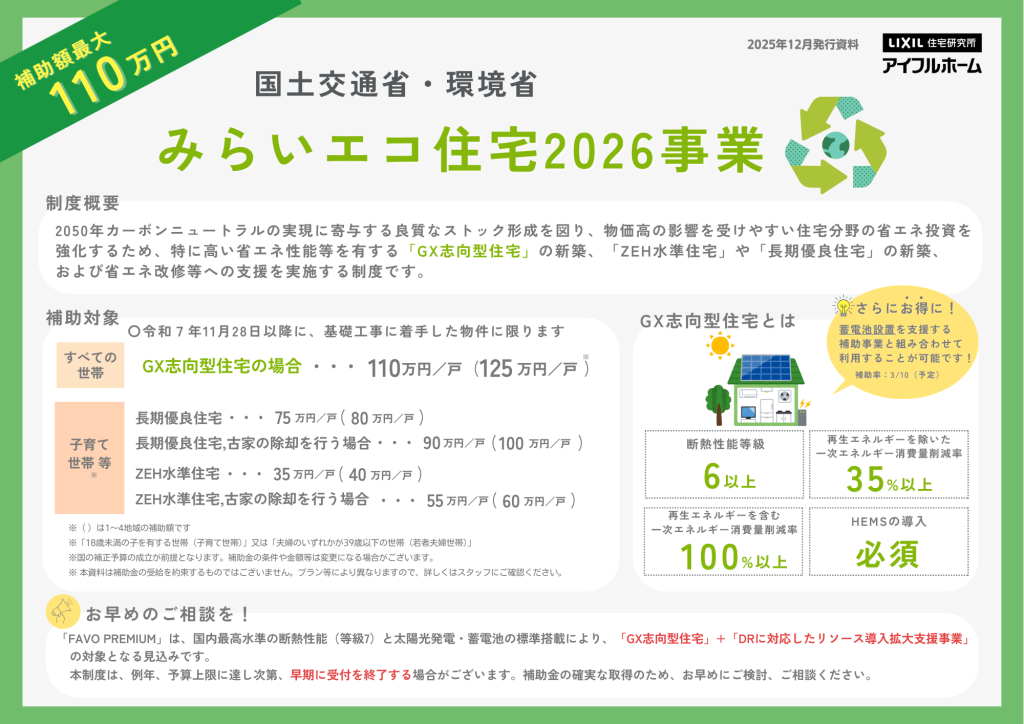 ★国の補助金制度 みらいエコ住宅事業★